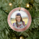 Ein luxuriöses, glänzendes Rosa und Rose vergoldete ombre Imitate Folie und funkelnd silberne Diamantrhinestones Foto Weihnachtsbaumschmuck mit einem eleganten Monogramm auf der Rückseite. Alle Glitzern und Glanz in diesem Design sind mit digitaler Grafik erstellt und drucken wie Ihr Foto. Erstellen Sie Ihren eigenen eisigen, silbernen Familienurlaub Foto-Sake, indem Sie das Beispiel-Foto des jungen Mädchens mit Ihrer Tochter ersetzen. Passen Sie den modernen personalisierten Schwarzweiß-Monogramm-Schriftart auf der Rückseite an.