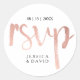 Dieser Aufkleber kann mit Ihrem Hochzeitstermin und Ihren Namen personalisiert werden. Das Design verfügt über einen Imitat Rose Gold-Folie Pinsel Skript Schriftart.
