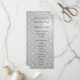 Imitate Silber Glitzer Hochzeitsfeier Vorlage. Glamouröses Design mit funkelnd Glitzern und stilvoller Schriftzeichen. Silber leuchtender Hintergrund mit schwarzem Text. Passen Sie an, was in Ihrem Programm enthalten sein soll. Trendy Heirat für Braut und Bräutigam. Geben Sie Namen, Datum, Ort, Reihenfolge der Zeremonie und Hochzeitsfeier ein. Teil des funkelnd Matching Thema Sammlung Set mit Bridal-Accessoires und mehr. Glitterie glimmert und funkelnde Sterne. Luxuriöses Aussehen.