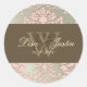 Rosa Damask Monogram Hochzeitskleber (Umschlagsiegeler), Schokoladenfarben Akzent. Ideal für den Alltag. Vollständig anpassbar. Schriftart und Hintergrundefarben lassen sich leicht ändern. Copyright © 2009 PixDezines.com und PixDezines auf zazzle.com