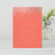 Imitate Silver Foil Confetti Dots Coral Wedding Einladung
