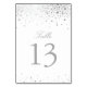 Moderne und elegante Tischnummern mit Imitaten aus Silberfolie Konfetti. Weitere Farben und passende Elemente sind verfügbar. Bitte beachten Sie, dass keine Folie auf dem Endprodukt vorhanden ist.