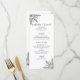 Passen Sie die hübschen Imitate Silver Snowflakes Winter Wedding Menü mit den Details der Mahlzeit, die Sie in Ihrem Dezember, Januar oder Februar Brautparty Mittag, Probe-Dinner oder Heirat Empfang, indem Sie den Salat oder ersten Gang, Vorspeise oder zweiten Gang und Dessert oder dritten Gang. Dieses elegante winterliche Hochzeitsmenü bietet eine raffinierte, silbergraue Schneeflocke, die an den Ecken mit weißem Hintergrund schmücken.