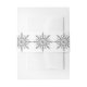 Pair die hübschen Imitate Silver Tone Snowflakes Winter Wedding Invitation Belly Bands mit der passenden Ehe lädt ein, ein koordiniertes Schreibwaren-Set für Ihre kommenden Nuptials zu schaffen. Diese eleganten winterlichen Bauchbands zeichnen sich durch ein aufwändiges silbernes Schneeflockendesign mit weißem Hintergrund aus. Ideal für Paare, die ein klassisches Winterheiratsthema im Dezember, Januar oder Februar planen. HINWEIS: Schneeflocken sind kein erhöhtes metallisches Design. Es handelt sich um ein flaches, bedrucktes Imitat in metallischem Design.