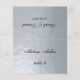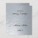 Eine Imitate silberne Hochzeitsfeier Platzkarte mit dem Namen des Gastes und der Tischnummer auf der Vorderseite gedruckt, die Braut- und Bräutigam-Namen und das auf der anderen Seite gedruckte Hochzeitsdatum (d.h. die andere Hälfte, bevor es zusammenfällt). Der gesamte Text ist ein schwarzes kalligrafisches Skript. Größe: 4,5" x 5,6" vor dem Falten, das sind 4,5" x 2,8" nach dem Falten.