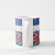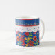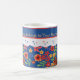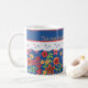 Eine hübsche White Keramik Coffee Tasse zum Personalisieren, mit nostalgischem Ambiente und einem Retro-Floral Mini-Printmuster auf einem Deep Blue Hintergrund, getrimmt mit White Lace-Effekt. Als Teil der Posh & Painterly 'Granny Print' Kollektion kann dieses Mix'n'match-handgemalte Papiercollage-Muster leicht an jede Tasse angepasst werden.