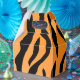 Dieses Imitat Tiger Print verfügt über schwarz simulierte Tiger Streifen auf einem Farbverlauf orangefarbenen Hintergrund.