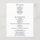 Verwenden Sie Ihr Lieblings-Foto, um ein individuelles Hochzeitsprogramm zu erstellen. Dieses flache Bogen-Programm bietet vorne Ihr Foto mit Imitat-Vellum-Stil-Overlays, um Ihre individuellen Informationen einzubinden. Auf der Rückseite finden Sie einfache schwarze Schrift und Druckschriften auf Weiß mit viel Platz für alle Ihre Hochzeitsdetails und Hochzeitsfeier-Mitglieder.
