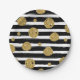 ImitatgoldGlitter punktiert Schwarz-weiße Streifen Pappteller