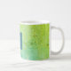 Diese Kaffee-Tasse bietet ein elegantes Design in aquamarin und grün und ist mit geometrischen Linien von hellgrünen Imitate Glitzer betont. Eine dunkle aquamarine Box in der Mitte bietet ein individuelles Monogramm.
