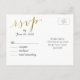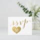 Imitats Gold Foil Glamour mit Herz | Hochzeit RSVP Postkarte. Elke Clarke © Andere Farben verfügbar unter www.zazzle.com/monogramgallery. Ein einfaches, aber vielseitiges, handgeschriebenes Drehbuch-Gold-uAwg für Hochzeiten oder andere besondere Anlässe wie Probe-Dinner, Duschen für Paare, Hochzeitstag-Feierlichkeiten. Goldfolie ist ein gedruckter Foto-Effekt.