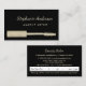 Eine berufliche schwarz-goldfarbene Makeup-KünstlerVisitenkarte mit einem Hauch von Glitzen. Dieses Design im Stil einer Termin-Erinnerung zeichnet sich durch ein glamouröses Imitat mit goldfarbenen Mascara-Pinsel aus. Personalisieren Sie das, indem Sie den Namen des Kosmetologen oder Kosmetikers hinzufügen. Flachbild, NICHT reflektierender Glitzer.