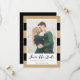 Stilvoll, modern Save the Dates mit Imitaten mit goldenem Glitzer und schwarzen Streifen, eleganter Typografie und einem einfachen Rahmen.
