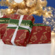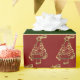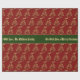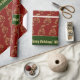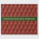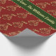 Weihnachten Tree Muster Imitats Gold Roter Hintergrund Green Ribbon Design Elegantes Weihnachtsgeschenk Wrapping Paper mit individuellem Text "Wir wünschen Ihnen ein frohes Weihnachtsfest! Mit Liebe The Williams Family" können Sie den Text ändern oder löschen