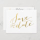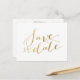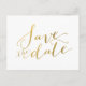 Bedruckte Imitate Gold Foil Glamour | Hochzeit Speichern Sie das Datum Postkarte. Elke Clarke © Andere Farben verfügbar unter www.zazzle.com/monogramgallery. Ein einfaches, aber vielseitiges, handgeschriebenes Skriptgold Save the Date für Hochzeiten oder andere besondere Anlässe wie Probe-Dinner, Duschen für Paare, Hochzeitstag-Feiern. Goldfolie ist ein gedruckter Foto-Effekt.