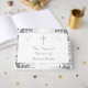 Das Design zeigt das Bild einer zarten Spitze als Rahmen um ein weißes Rechteck. In der oberen Mitte befindet sich das traditionelle Symbol für Kreuz & Ringe. Reverse zeigt ein Imitat-Spitzen-Bild, das ein kleines Rechteck mit anpassbarem Text im eleganten Nuptial Schriftart umgibt. Entworfen, um sich mit der Champagne-Pink Lace Katholischen Hochzeitssuite zu koordinieren.