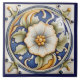 Elegante Keramik-Fliesen,französisches handgemaltes Motiv,mediterranes goldfarbenes luxuriöses Design,goldcremeblau und weiß,sommerliche Primrose-Blume blumig,extravaganter Luxus-Mohn,authentisches klassisches Gemälde,Vintag Retrostil,Deko britisch englisch,Indigogelbe Blume