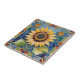 "Gelbe Sonnenblumen", "Sonnenblumen auf dunkelgrün", "orange-blaues Türkis, "gaudi-style mosaic art", "van gogh inspiriert design", "sommergarten", "dekorative Blume Kopf", "dekorative Keramik", "bunt hell fröhlich", "lebhaft bunt multicolor"