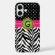 Drehen Sie Kopf mit diesem Imitat Ribbon Jewel Zebra Dot Muster Monogram iPhone 16 Fall von Socialite Designs. Dieses Design mit einem heftigen Zebradruck, der mit spielerischen Polka-Punkten geschichtet ist, wird mit einem Imitat-Farbband und Juwel-Akzent, die Funkeln ohne Masse. Ein individualisierbares Monogramm-Banner macht es einzigartig - perfekt für die Modedesigner, die mit einer Touch von Glücksspiel kühne Stil Liebe haben. Dieses Gehäuse wurde mit dem schlanken Case-Mate Barely There Profil erstellt und bietet leichten Schutz beim behalt Ihres Handys chic und expressiv. Übertragen Sie das Design einfach auf andere iPhone-Modelle oder optimieren Sie das Layout, um Ihr Anzug zu erhalten. Es ist glamourös, wild, und ganz Sie.