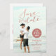 Imitats Rose Gold Foil Glamour Handschrift | Foto Save the Date Karte. Elke Clarke© Abrufbar unter www.zazzle.com/monogramgallery. Modernes minimalistisches Foto-Overlay-Design mit den Worten "Rett unser Datum" in der Rose Gold Handschrift Drehbuch. Eine Rose goldener Punkt für den Hochzeitstag und Text für die Braut- und Bräutigam-Namen und den Hochzeitsankündigung Informationen Text. Imitate Rose Gold-Folie ist ein gedruckter Foto-Effekt. Andere Farben sind in unserem Shop erhältlich.