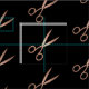 Niedliches Haarstyling-Thema Stoff weist ein Muster von Imitaten Rose Gold-Folie Schere auf einem schwarzen Hintergrund. Ideal für Friseursalons, Stylisten, Farbenliebhaber oder Friseure.