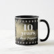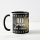 Spaß, moderne Malerei mit Imitats Metal-Sticks auf dieser maßgeschneiderten Mitarbeiterjubiläumsjubiläum Kaffee-Tasse personalisiert mit Ihrer Wahl von Text und Farbe, um Langlebigkeit, Hingabe und herausragenden Service zu erkennen, perfekte Ergänzung zu Ihrer Mitarbeitererkennung und Arbeit Verlobung.