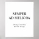 Ein motivierend Poster mit dem lateinischen Begriff "semper ad meliora". Eine beliebte Formulierung im antiken Rom ist die Übersetzung "immer zu besseren Dingen". Es erinnert uns daran, uns darauf zu konzentrieren, uns in Richtung größerer Dinge zu bewegen, ohne zurückzublicken. Dieses Zitat ist sehr geeignet für Situationen, in denen wir lassen, weitermachen und ein neues Kapitel beginnen müssen. Die Schrift hat ein klassisches Gefühl, das römische öffentliche Inschriften erinnert, und die englische Übersetzung ist in einem kontrastreichen Schriftart. Das typografische Design zeigt schwarzen Text auf weißem Hintergrund.