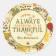 Cooler Erntedank Aufkleber Textdesign-Es gibt immer etwas zu danken, mit Platz für anpassbare Familienname. Farbenfrohe Herbstblätter mit beigen Witterungsbäumen aus Holz.