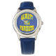 Kinderuhr aus Edelstahl mit blauem Lederarmband
