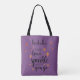 Verlass immer ein wenig Sparkle, wo immer du Typografie-Tasche auf lila Tasche. Sie können die Hintergrundfarbe ändern und mit Ihrem eigenen Namen personalisieren oder entfernen, um nur das Angebot verlassen. Ideal, um einen Geburtstag oder als Abschluss zu feiern.