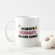 Ideal für Fressliebhaber mit einem Sinn für Spaß, sagt diese spielerische Tasse alles: "Immer Hunger, Niemals Entschuldigung." Mit Donut-Briefen für "Hungry" und lustigen Pizzas und Burgerakzenten ist es eine fröhliche Erinnerung, dass Snacks Leben sind. Genießen Sie Ihren Kaffee, Tee oder Kakao, während Sie sich stolz auf Ihren Feinschmecker freuen. Ein tolles Geschenk für: Feinschmecker, Imbissliebhaber, Uni-Studierende, Mitarbeiter, Freunde und alle, die einer leckeren Leckerei nicht widerstehen können.