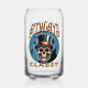 Stilvoller Schädel mit einem klassischen Top-Hut, umgeben von Fledermäusen und unheimlichen Halloween-Villen.