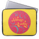 "Always Reading" ein hellrosa, blau und gelb mit Wirbel Laptop-Ärmel. Ein wunderbar buchhaltiger Ärmel für den Buchliebhaber, der immer liest. *Bitte beachten Sie, dass das Zazzle-Wasserzeichen, das in der Zoomvorschau angezeigt wird, NICHT auf dem gedruckten Endprodukt erscheint. © Bookish and Wonderful