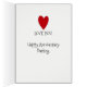 Ein sehr einfaches Kartenspiel-Sprichwort "Ich werde dich immer Liebe geben" mit einem leuchtend roten Herz innen.