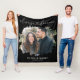 Elegante Fleecedecke mit einem schicken schwarzen Hintergrund, das Sprichwort "immer ewig", das ein Herzzentrum, ein Foto des glücklichen Ehepaares, ihre Namen und ein bedeutendes Datum umfasst.