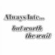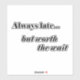Laufen Sie immer zu spät? Lass allen, warum du unterwegs bist mit diesem Aufkleber. Sie mögen die ganze Zeit zu spät sein, aber ich wette, Sie sind das Warten wert.