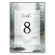 Immergrüner Nebel | Rustikale Wald-Tischkarte Numm Tischnummer