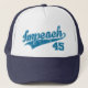 Politischer Slogan LKW-Hut mit dem Sprichwort "Impeach 45" in blau Vintag Not leidenden Schrift, die das Aussehen eines coolen Baseball Team-Logo mit "45" als Spielernummer gibt. Üben Sie Ihr Recht auf Redefreiheit mit diesem lustigen, gegen Trump gerichteten politischen Hutdesign aus, das perfekt für alle ist, die Donald Trump lieber verdrängen sehen würden.