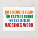 Hillary Clinton zitiert Impfungen: Die Wissenschaft ist klar: Die Erde ist rund, der Himmel blau, Impfstoffe funktionieren. Rechtzeitige Postkarte angesichts der Masern-Ausbrüche und der Covid-Pandemie. Bitte impfen Sie Ihre Kinder, um die Ausbreitung von Krankheiten und Krankheiten zu verhindern.