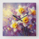 Impressionist Daffodin Lila Gelbe Kunst Quadratische Wanduhr