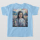 Das ist ein Impressionistisches Portrait eines T - Shirt. Das Gemälde zeichnet sich durch eine lebendige, faszinierende Abstammung aus. Das Mädchen hat langes, dunkles Haar und trägt ein weißes Kleid mit Spitzen. Sie ist auf einem Gebiet der Blume stehend. Der Hintergrund ist eine ätherische Landschaft mit Bergen, Bäumen und Farben am Himmel. Das Wort "Tochter" ist im hübschen Text am unteren Bildrand. Der T - Shirt ist ein hellblauer T - Shirt.