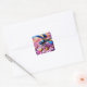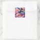 Impressionistische Dragonfly On Pink Daisis Floral Quadratischer Aufkleber
