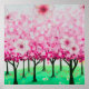Abstrakte Kirschblüten sind ein originelles Design. Pinks Grüntöne und Weiße machen dieses helle Frühlingsgemälde. Abstrakter Hintergrund und realistische Blüten in der Luft schweben.