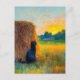 Ein beeindruckendes Ölgemälde mit einer Katze, die bei einem goldenen Sonnenuntergang neben einem Heuhaufen auf einer Wiese sitzt. Warme Töne und strukturierte Pinselstriche erinnern an eine ruhige Landschaft.