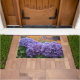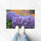 Diese schöne und einladende willkommene Matte kennzeichnet eine impressionistische Wiedergabe der lila Hydrangeablüten.