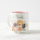 Diese Keramik Tasse hat eine hübsche Rose Blumenstrauß und zeigt eine Bibelverse. Die verwendeten Farben sind olivgrün, pfirsichfarben, pflaumenfarben, rot und orange. Oben ist stilisierter Text in grün, der sagt "In allen Dingen geben Dank". Alles wird auf einem knalligen weißen Hintergrund angezeigt. Das Innere der Tasse ist rosa. Koordiniert die Shabby Chic Peach Rose Sammlung.