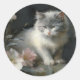 in Begleitung von Blume, graue und weiße Kätzchen Runder Aufkleber
