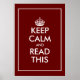 In Bordeaux-Rot behalten, ruhiges Mémwall-Poster Poster