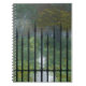 Eine 3D-Landschaft im Frühherbst, die einen Weg darstellt, der durch das Gras wandert, in einen miessigen Wald mit alten und gegrabenen Bäumen. Aber der überwucherte Weg wird durch ein Tor von schwarzen Eisenstangen zwischen dunklen Ziegelmauern versperrt. Erstellt in Vue.