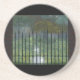 Eine 3D-Landschaft im Frühherbst, die einen Weg darstellt, der durch das Gras wandert, in einen miessigen Wald mit alten und gegrabenen Bäumen. Aber der überwucherte Weg wird durch ein Tor von schwarzen Eisenstangen zwischen dunklen Ziegelmauern versperrt. Erstellt in Vue.